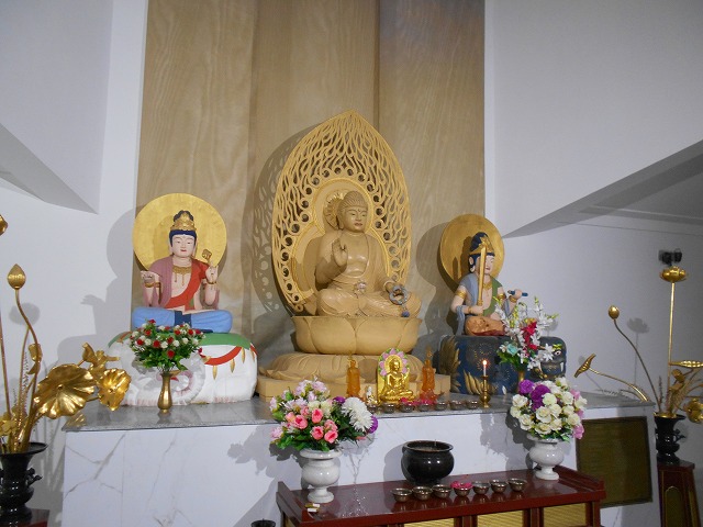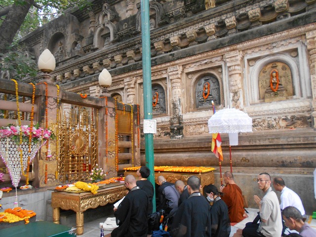 一通り大菩提寺を参拝した後は、近くにある印度山日本寺や、仏心寺もお参りさせて頂きました。仏心寺では、別科15期生であり、仏師としても活躍されている前田昌宏上人が彫られた釈迦三尊像も拝見することができました。このような聖地に、別科の卒業生が係わっておられることにも感激です。