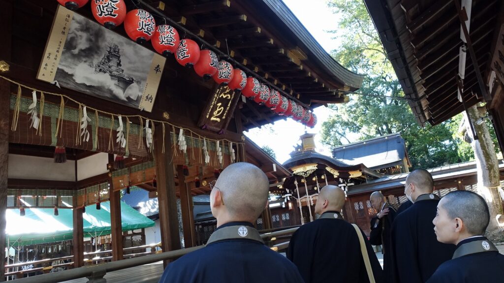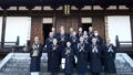 この日、2年生は学外授業です。京都御所を横断した先にある山田松香木店様を訪問しました。講師の先生に、御所の中や周辺の神社などについて案内していただきながら、お店まで向かいます。